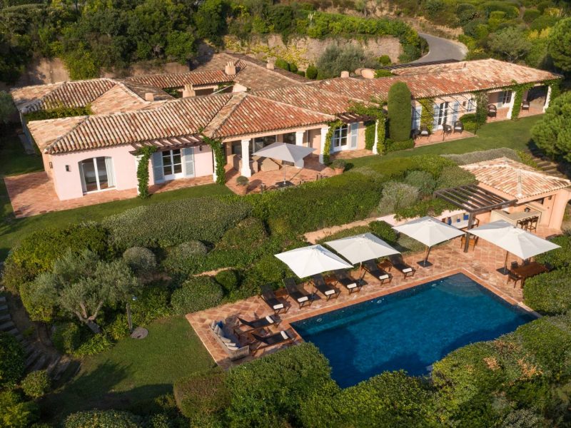 Villa 5 is located in the lower part of the estate near the sea. This single-story residence features a large covered patio with fireplace, lounge and outdoor dining room, near the pool, with a beautiful sea view. It has five bedrooms including a master bedroom overlooking the pool and the sea, located on the other side of the patio with an independent entrance.