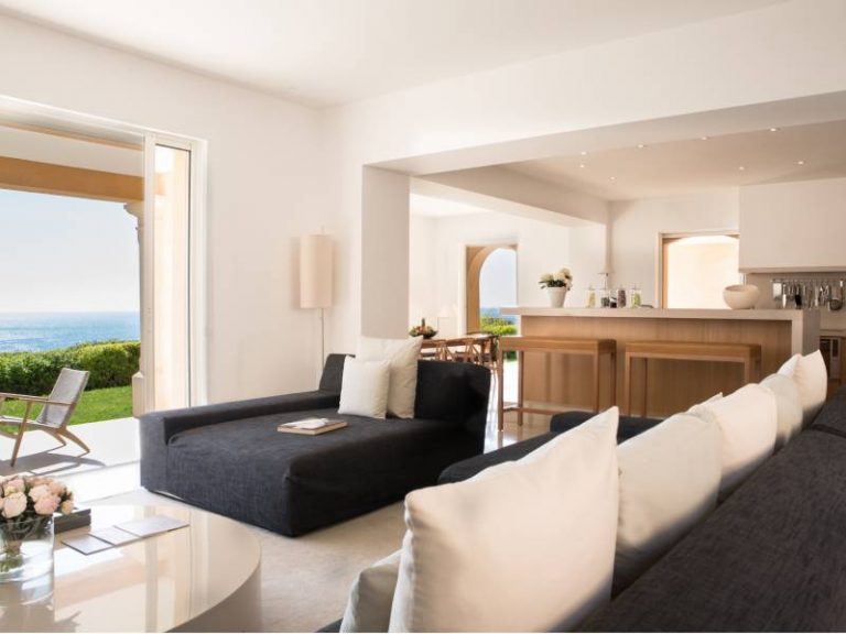 Villa 9 is a four-bedroom residence located in the lower part of the property and enjoying an unobstructed view of the sea. Its modern interior and a typical layout make it a contemporary villa. In The main part comprises the kitchen, the dining room, the lounge, the master bedroom and a double bedroom. On the other side of the covered patio are two other bedrooms.